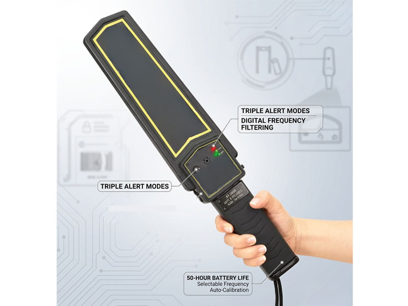 The Go-Scan Handheld Metal Detector (HHMD) series comprises compact, portable electronic instruments designed to locate and identify metallic objects at short range. Ergonomically designed for one-handed operation, these wand-shaped devices are purpose-built for prolonged security screening use.