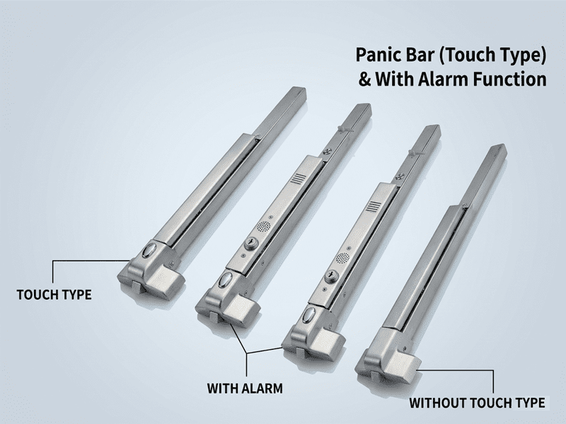 Alarm-equipped variants include an audible alert system that activates immediately when the panic bar is operated — providing deterrence against casual or unauthorized use during normal hours while alerting security personnel to emergency activations. The alarm function is designed to operate without compromising the primary panic exit function at any time.
